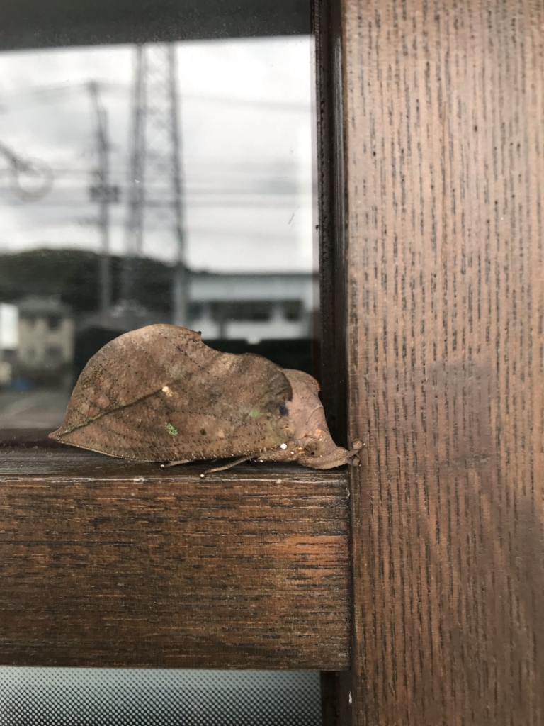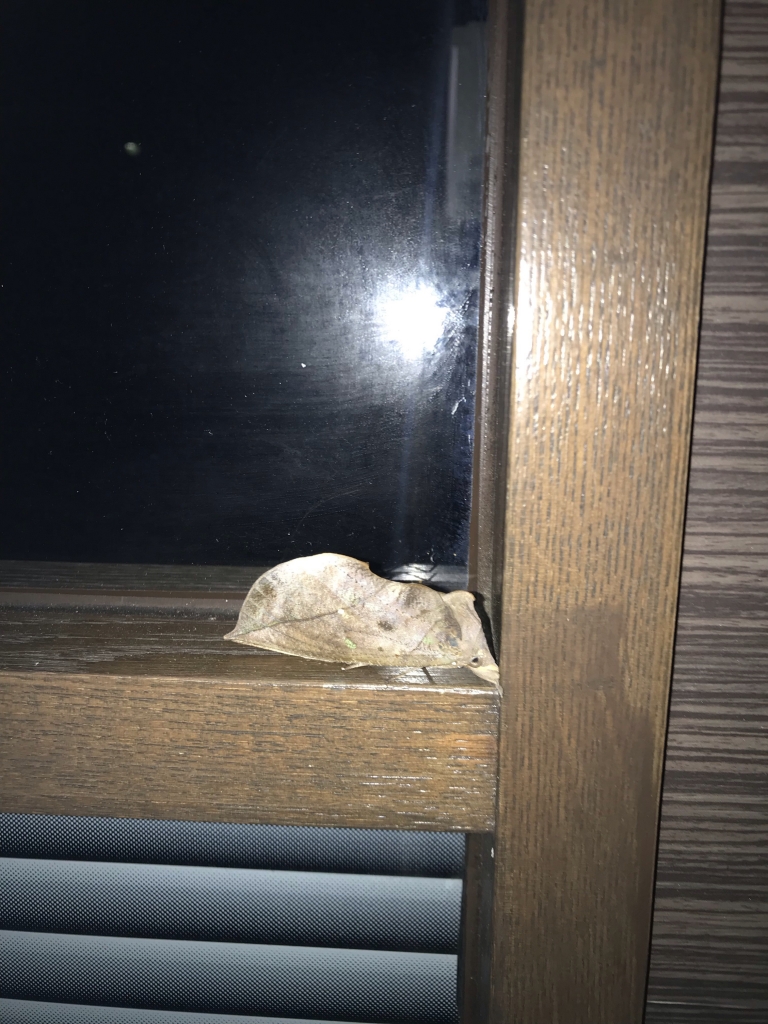 外のガラスの窓枠に枯葉が乗ってると思って払うと、